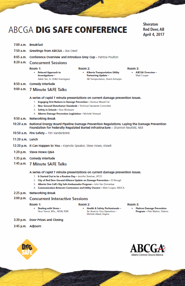 Once again, we will be participating in the annual Alberta Common Ground Alliance (ABCGA) Dig Safe Conference in April. This year’s conference is being held at the Sheraton Hotel in Red Deer on April 3 and 4, 2017.