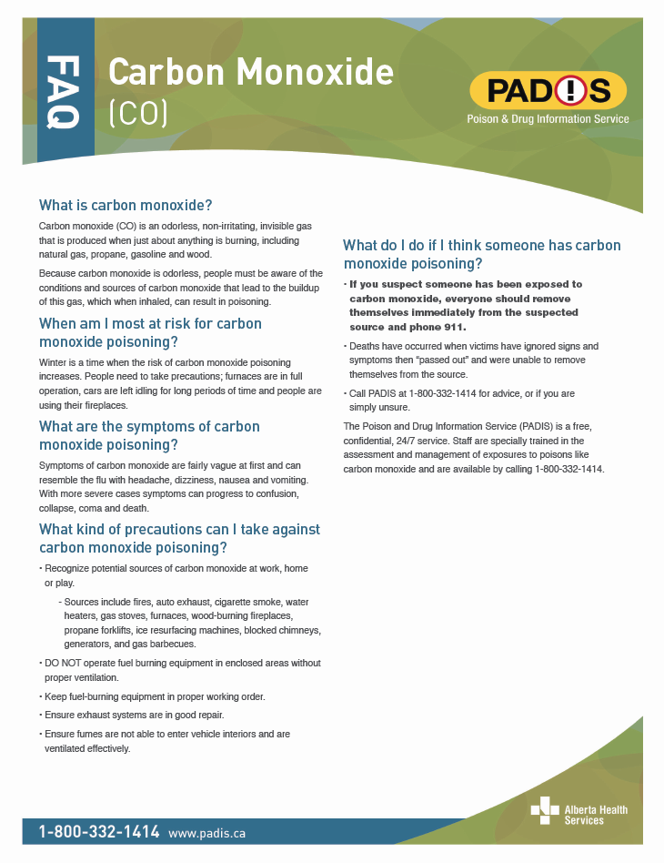 Alberta Health Services has produced an FAQ with further information that can help you prevent CO poisoning.